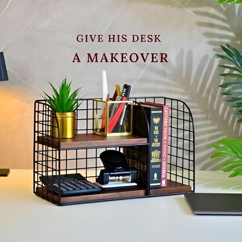- بفضل سعة التخزين الكبيرة في هيكله متعدد الطبقات، يوفر هذا الرف الصغير مساحة واسعة لتنظيم الكتب أو اللوازم المكتبية أو العناصر الزخرفية، مما يجعل سطح مكتبك أنيقًا دون التضحية بالأناقة أو سهولة الوصول.