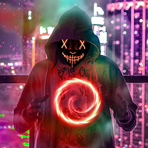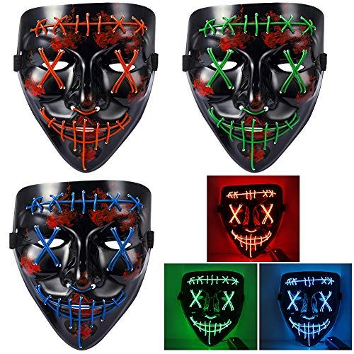 Tackview - قناع مخيف للهالوين بإضاءة ليد، قناع فيلم ذا بيرج مع إضاءة ليد للوجه، سلك مضيء للمهرجانات والكرنفالات وأزياء الهالوين والحفلات من تاكفيو (إضاءة أزرق وأخضر وأحمر) [3 قطع]