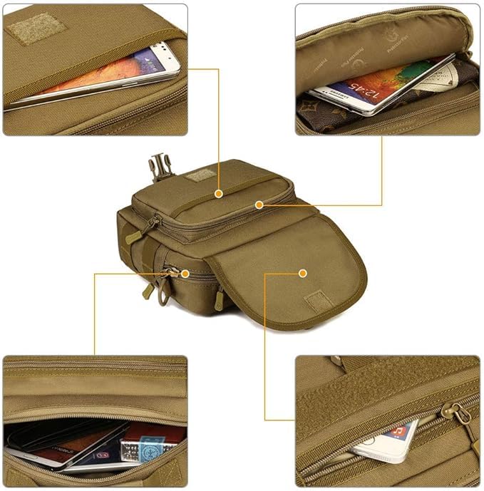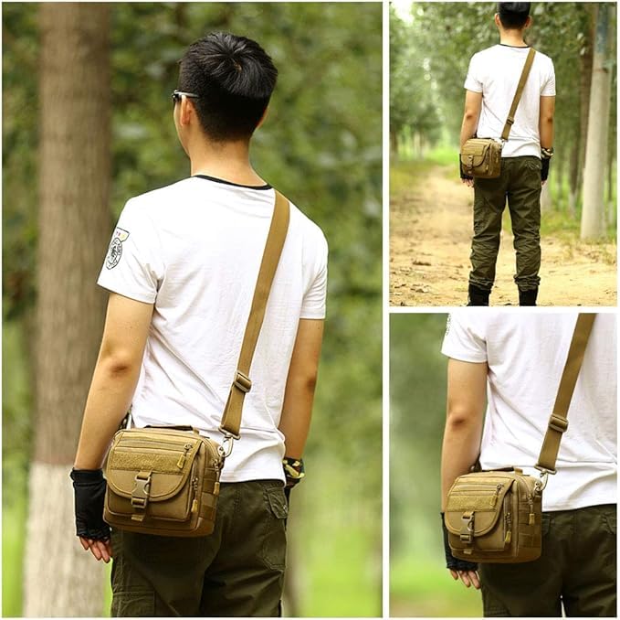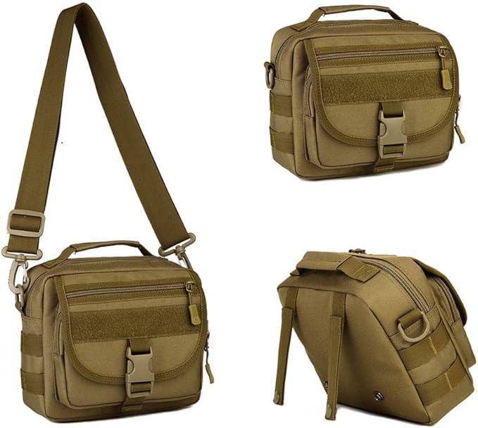 Generic - شنطة كتف تكتيكية بنمط عسكري مع نظام مولي وحزام قابل للتعديل، لون كاكي، مقاس M