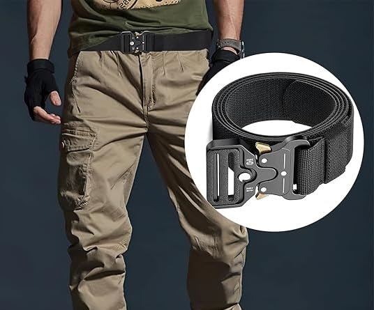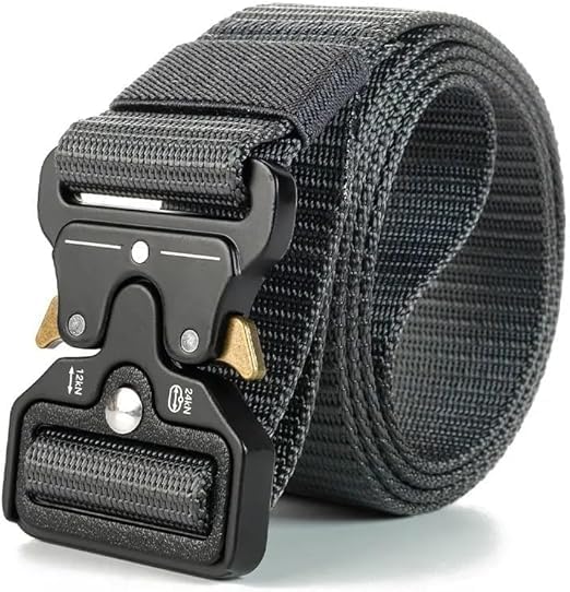 Generic - حزام عسكري تكتيكي مع مشبك بوليمر شديد التحمل سريع الفك، حزام شبكي من النايلون شديد التحمل، متعدد الأغراض للمشي لمسافات طويلة والتخييم والأنشطة الخارجية، طول 1.15 م، تصميم ملون