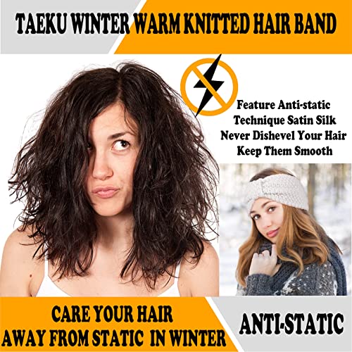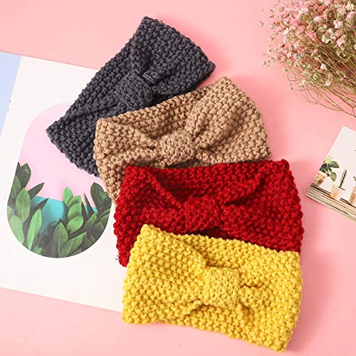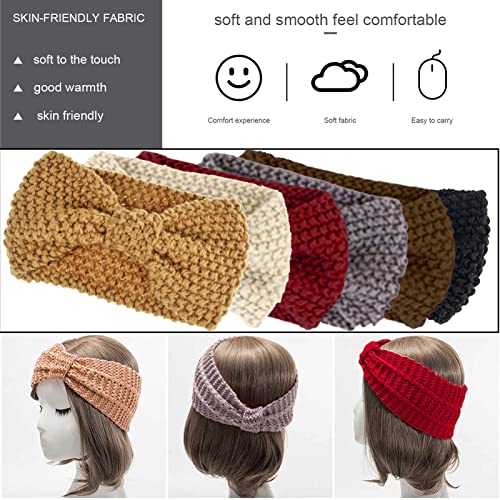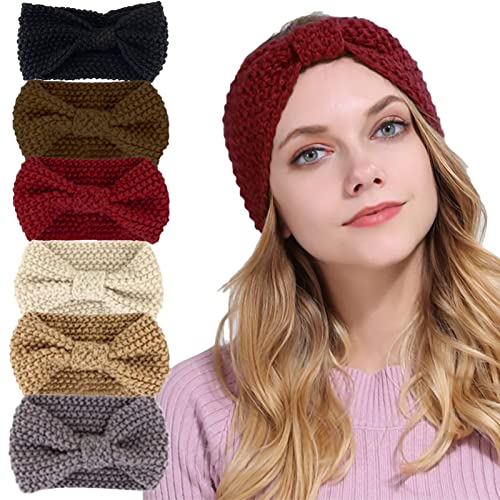 Taeku - طوق رأس شتوي للنساء، عبوة من 6 اربطة شعر محبوكة باستك، تصميم على شكل فيونكة من الكروشيه، تربون منسوج على شكل فيونكة (جرانيولز)