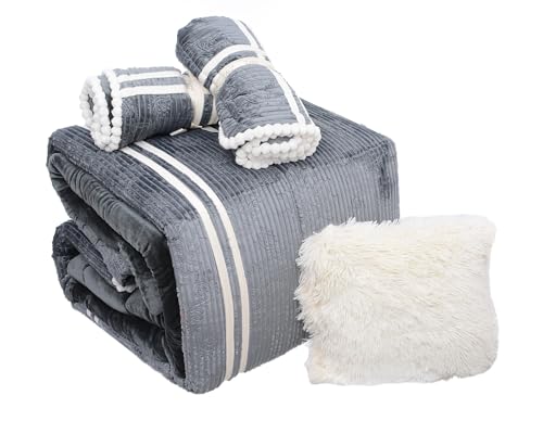 - تاج طقم لحاف 4 قطع، مقاس 240×260 + 2 خدادية مقاس 55×75 + تربيعة، لحاف فايبر طبي معالج ، كافيه - 18212