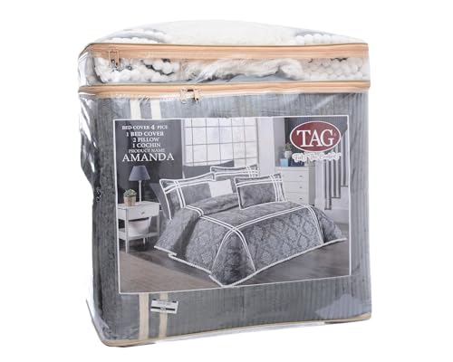 Egyptian Textile - طقم لحاف 4 قطع من تاج، مقاس 240 × 260 + 2 خدادية 55 × 75 + مشمع، الياف معالجة طبية، كافيه، 18212