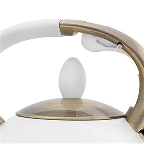 TAISK - أبريق قهوة مطلي بالكهرباء مطلي بالبرونز مع صفارة رذاذ من تيك (اللون: ابيض)