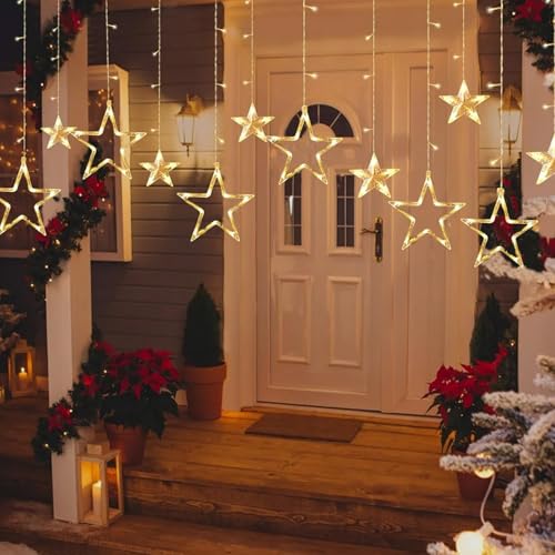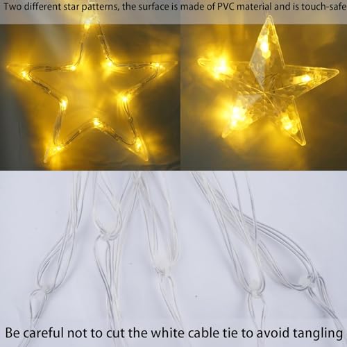 - 【مصابيح ستارة نجوم للكريسماس】 ستارة نجوم أضواء الكريسماس ضوء أبيض دافئ بطول 3.5 متر مع 138 مصباح LED، قطر النجمة الكبيرة: 17.5 سم/6.88 انش، قطر النجمة الصغيرة: 8.5 سم/3.34 انش، أضواء جميلة ودافئة، تجلب الدفء للناس في الكريسماس.