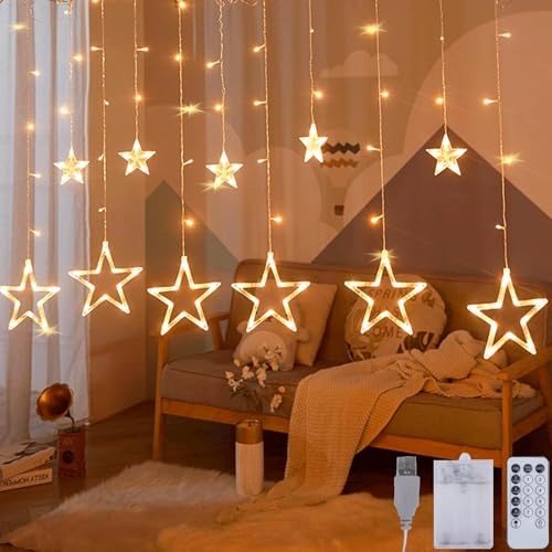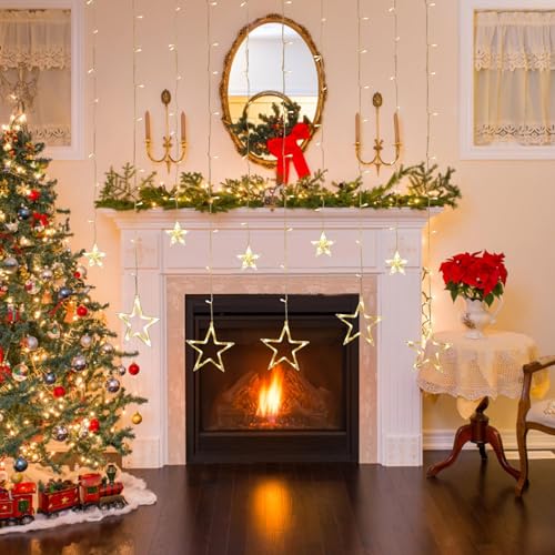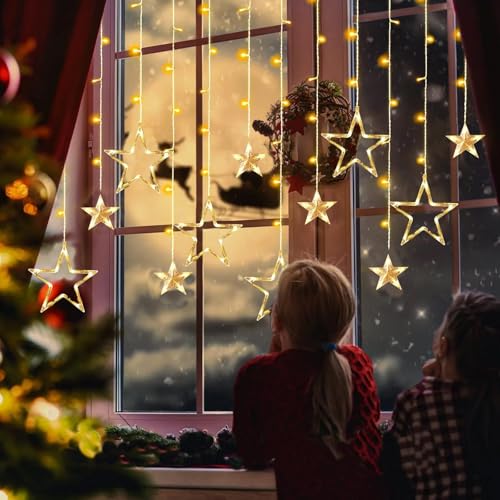 TAIKOUL - مصابيح نافذة للكريسماس بطول 3.5 متر من تايكول، 138 مصباح LED لستارة الكريسماس مع 12 نجمة و8 اوضاع لتزيين الكريسماس وحفلات الزفاف وغرفة النوم والحائط تعمل بمنفذ USB وبطارية