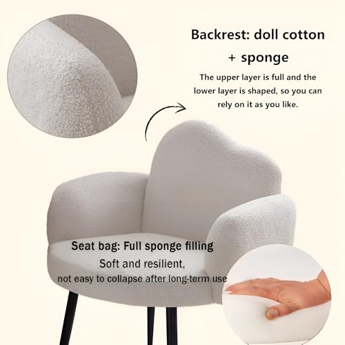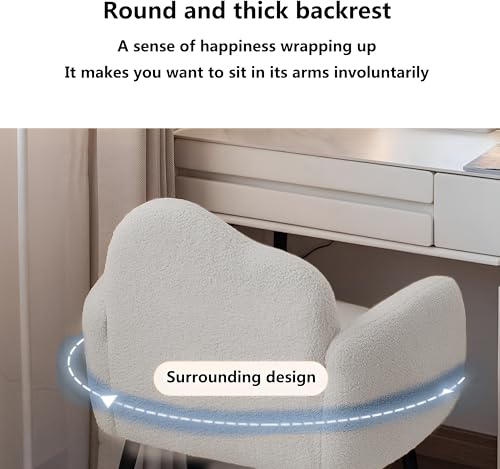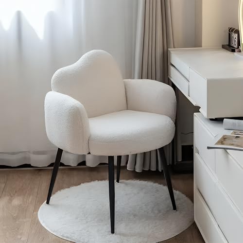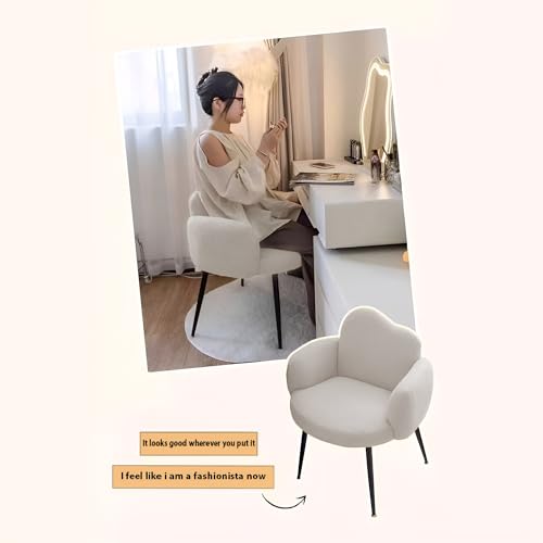 Taimi - كرسي مصنوع من قماش البوكليه مزود بمساند للذراعين ومسند ظهر مريح وأرجل معدنية، كرسي مكياج مناسب لطاولة الزينة وغرفة المعيشة وغرفة النوم والمكتب من تايمي (أبيض)
