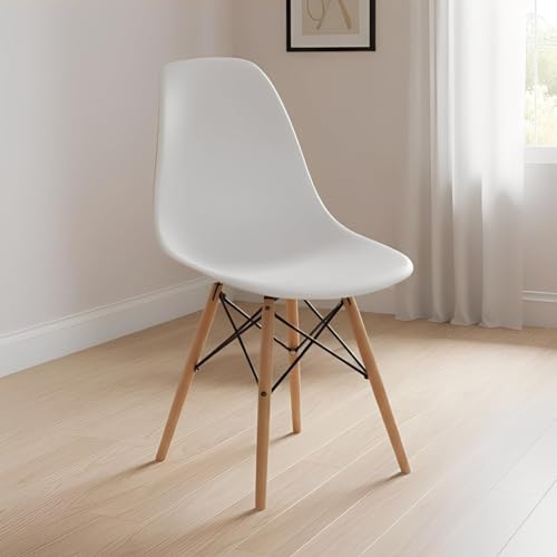 Modern Future - كرسي طعام بلاستيكي من تايمي بتصميم صدف عصري من منتصف القرن مع ارجل خشبية طبيعية للمكتب والمطبخ وغرفة الطعام وغرفة النوم وجانب غرفة المعيشة