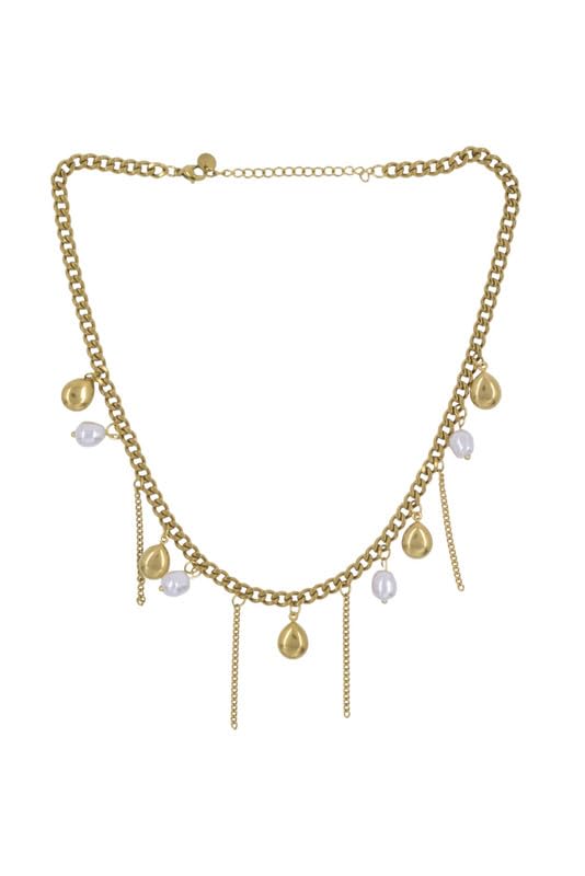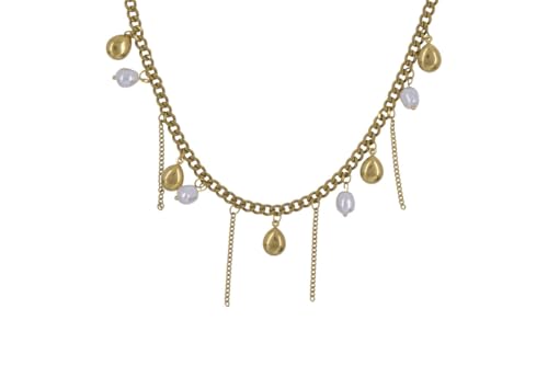Generic - سلسلة من الستانلس ستيل بلون ذهبي مع لؤلؤ باروك للنساء - ذهبي
