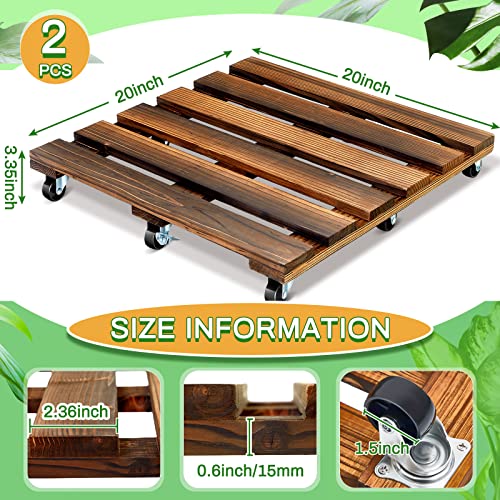 Taiyin - حامل نباتات خشبي من تايين بعجلات قابلة للقفل، حامل نباتات دوار متين بعجلات، قاعدة متحركة دوارة قوية للنباتات للاستخدام الداخلي والخارجي، سعة حمل 99.8 كجم، 50.8 سم، 2 قطعة (لون بني)