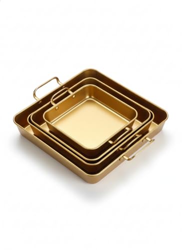Generic - طاجن مستطيل بيد ذهبي – متاح 3 مقاسات – مثالي للطهي والتقديم G (كبير)