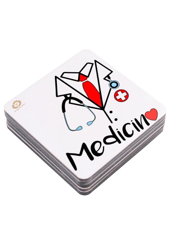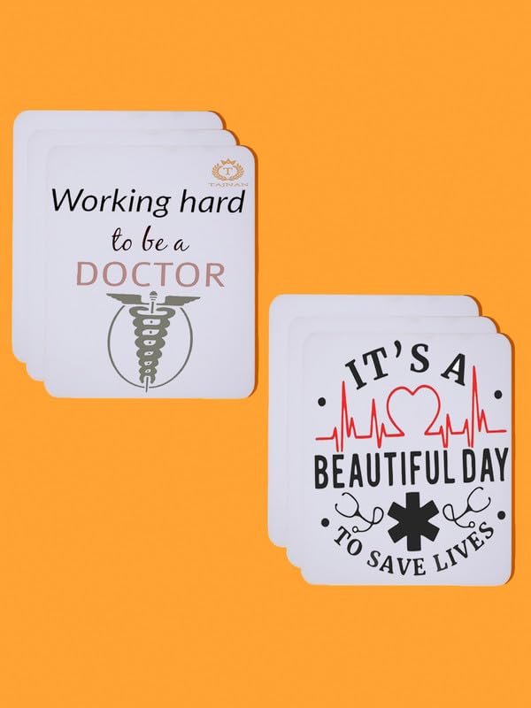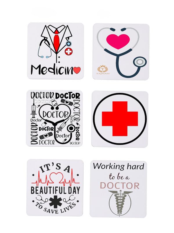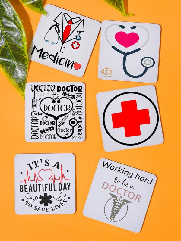 TAJNAN - قاعدة كوب خشبية مطبوعة بتصميم طبيب مع طلاء بلاستيكي بتصميم مربع 10×10 سم، حامل جميل ومناسب لأكواب الشاي والقهوة وجميع أنواع الأكواب من تاجنان مجموعة من 6 قواعد