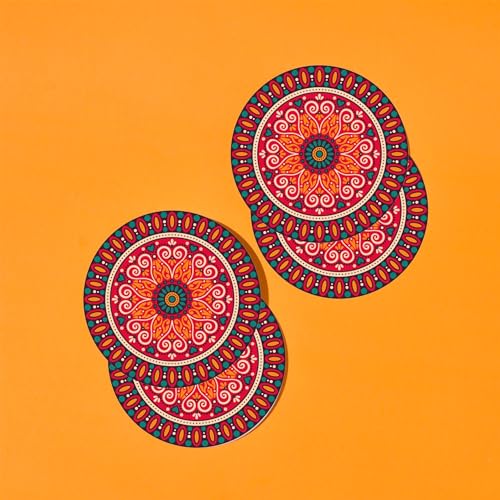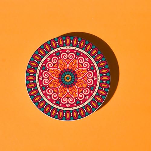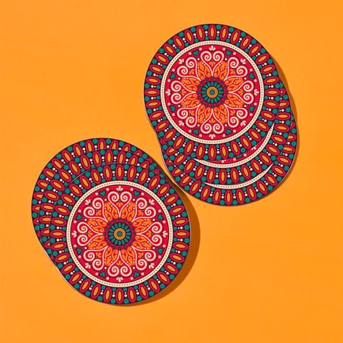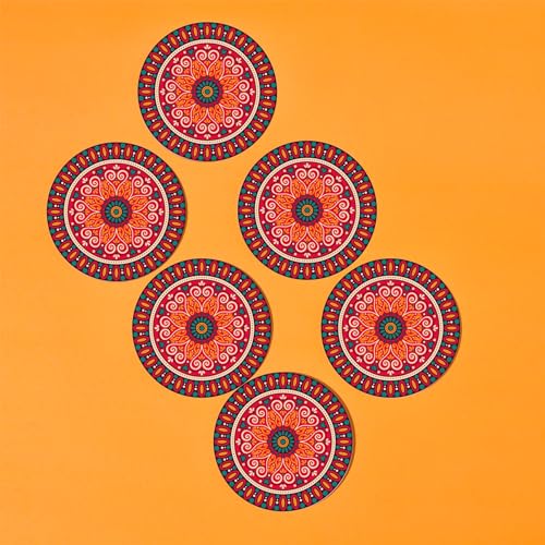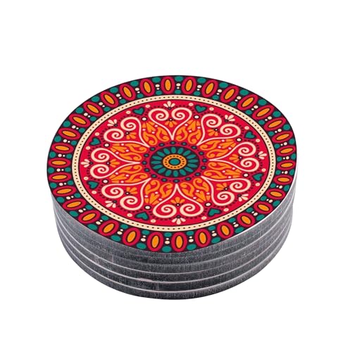 TAJNAN - مجموعة قواعد أكواب مطبوعة مكونة من 6 قواعد من تاجنان قواعد خشبية جميلة مطلية بالبلاستيك، مجموعة حامل أكواب مناسبة لأكواب الشاي وأكواب القهوة والكؤوس (دائرية 10×10 سم) (تاج كوستر دائري - ART01 أخضر)
