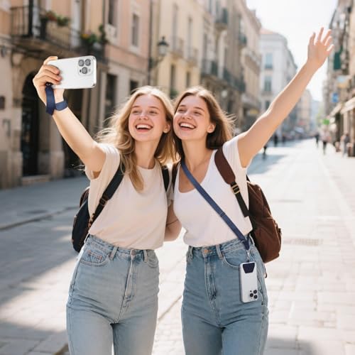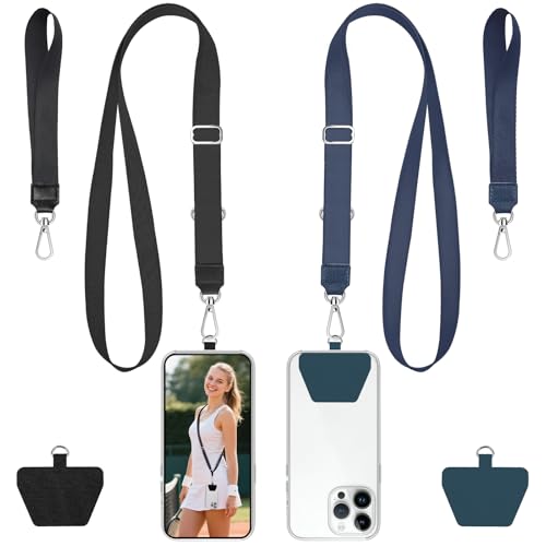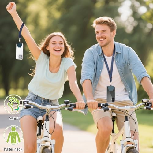 Takyu - تاكيو حبل للموبايل، عبوتان من حزام الرقبة والمعصم مضاد للسقوط مع قطعتين من رقع الحبل، امن بدون استخدام اليدين لمعظم الهواتف