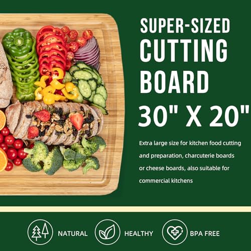 Takywep - لوح تقطيع بغطاء علوي للموقد الخشبي 76.2 سم × 50.8 سم، لوح تقطيع للمطبخ من البامبو لحفلات الباربيكيو، لوح لتفريغ الديك الرومي، ألواح كبيرة لتقديم اللحوم الباردة في الحفلات، لوح تقطيع للمساحة فوق الحوض