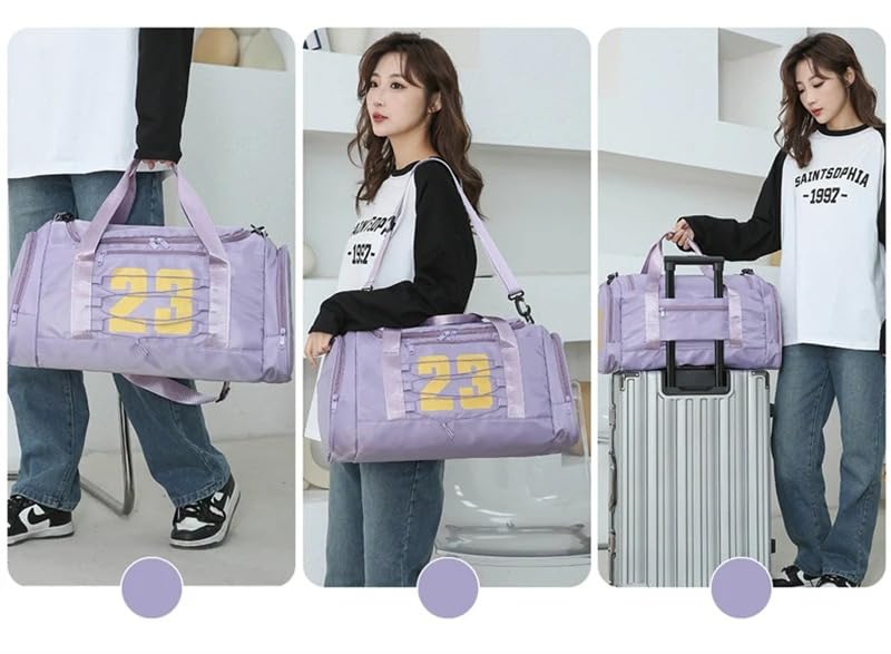 عام - شنطة دفل رياضية للسفر مع جيب مبلل قابلة للطي للرجال والنساء واللياقة البدنية والرياضة الليلية وعطلة نهاية الاسبوع وصالة الالعاب الرياضية والسفر والسباحة من تالاها ارجواني البوليستر