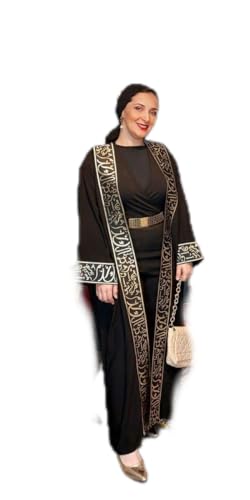 Generic - عباية للنساء بتصميم مفتوح متوسط الطول مزينة بشريط يحمل حروفًا من تاليا