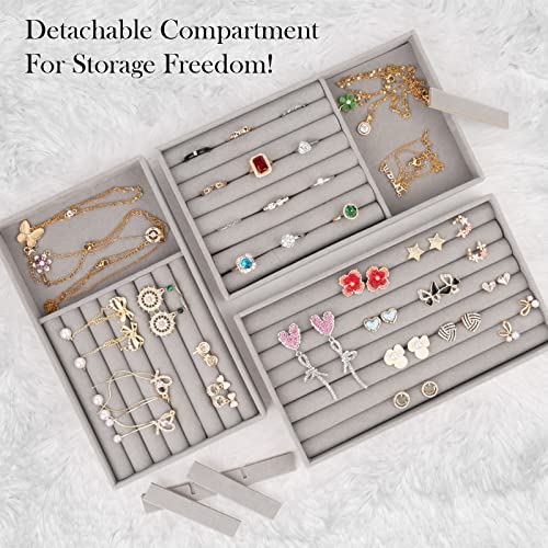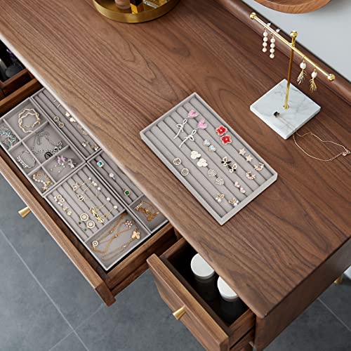 talifoca - منظم مجوهرات من تاليفوكا، أدراج مجوهرات، صينية مجوهرات قابلة للتكديس، منظم مجوهرات مخملي لتخزين وعرض الحلقان والقلائد، كرتون مقوى