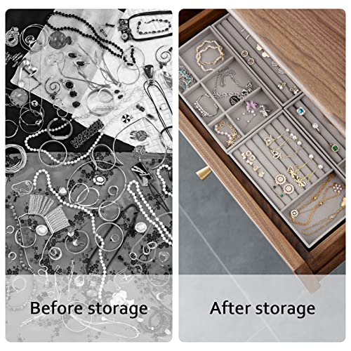 - 【مواد عالية الجودة】صينية المجوهرات مصنوعة من المخمل الرمادي الناعم، مما يمنع مجوهراتك من الخدش أو التشابك معًا، أكثر رقة من صناديق المجوهرات الأخرى ذات القاعدة المصنوعة من الورق المقوى، مقاومة للخدش والرطوبة.