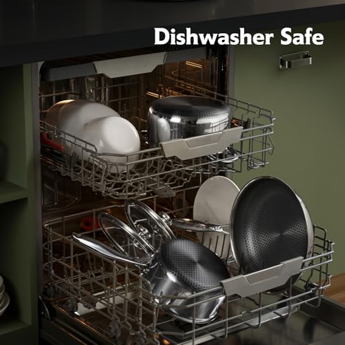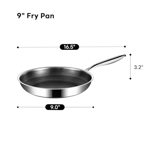 TalingMA - طاسة قلي غير لاصقة مقاس 22.86 سم من الفولاذ المقاوم للصدأ ذات تصميم شبيه بخلايا النحل خالية من المواد السامة بمقبض لا يسخن آمنة للاستخدام في غسالة الصحون وسهلة الاستعمال في المطبخ من تالينج ام ايه