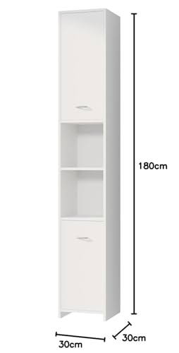 Generic - دولاب حمام طويل بأرفف | 6 مساحات تخزين ببابين | قفل مغناطيسي | وحدة تخزين خشبية ضيقة عالية | طويلة | مقاس 1.8 م × 30 سم × 30 سم | أبيض