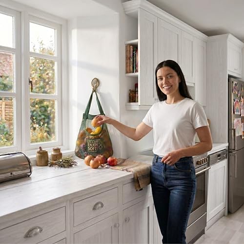 TAMALL. - اكياس تخزين شبكية متينة وقوية وقابلة لاعادة الاستخدام من تامول للفواكه والخضروات والثوم والبطاطس..(2 كيس)