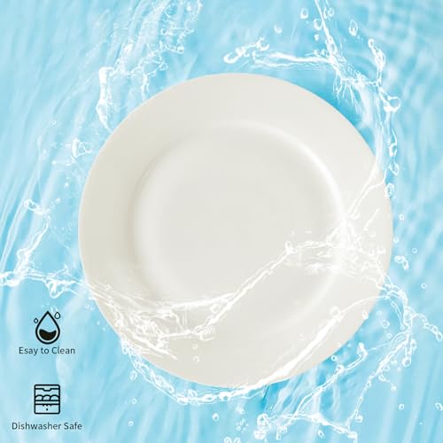 - أطباق العشاء - لون أبيض نقي مع تصميم مسطح أساسي ولمسة نهائية ناعمة أنيقة تناسب جميع أنواع الديكور في مطبخك، ومناسبة لأي مناسبة، سواء كانت كاجوال أو رسمية.