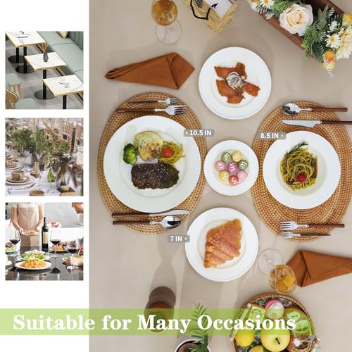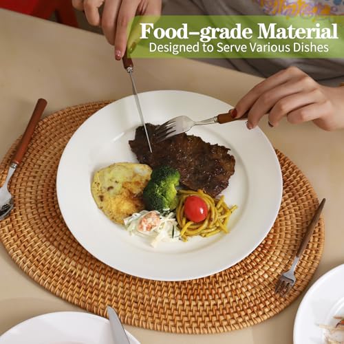 - بورسلين فاخر - مصنوع من البورسلين عالي الجودة، متين للغاية، آمن للاستخدام اليومي. هذه الأطباق مقاس 10.5 انش تكمل أي إعداد طاولة. مصممة لتقديم أطباق مختلفة، من المقبلات إلى الأطباق الرئيسية.