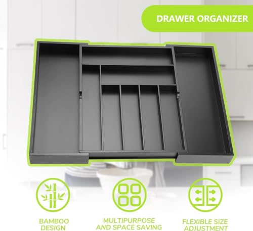 TAME - تيم منظم ادراج الفضيات المطبخ قابل للتوسيع درج ادوات المائدة من الخيزران حامل الفضية صينية تنظيم