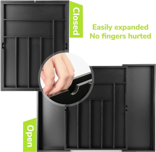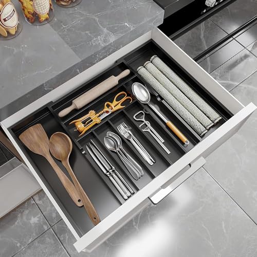 - 【مثالي للتخزين】 يحتوي منظم أدراج المطبخ على مساحات تخزين مستطيلة في مجموعة متنوعة من الأحجام التي سيتم تخزينها بالكامل بعدة طرق لزيادة مساحتك. توفر الأقسام المختلفة مساحة مثالية لحمل ملاعق الشاي وملاعق الحساء والشوك والسكاكين وقطع التقديم المختلفة، بالإضافة إلى أدوات وأدوات الطبخ مثل الملاقط وفتاحات العلب وموازين حرارة الطعام.