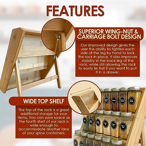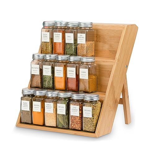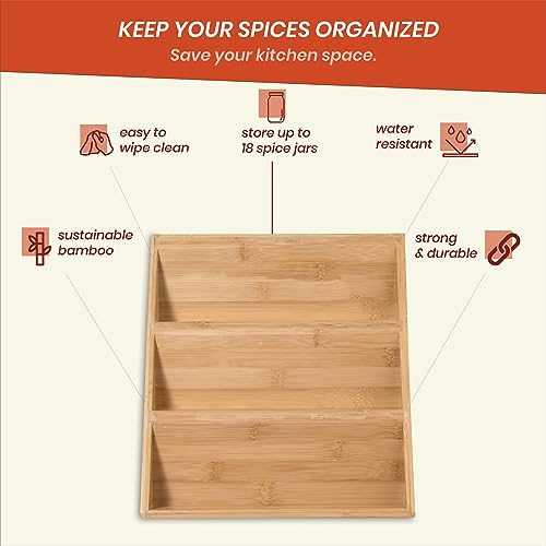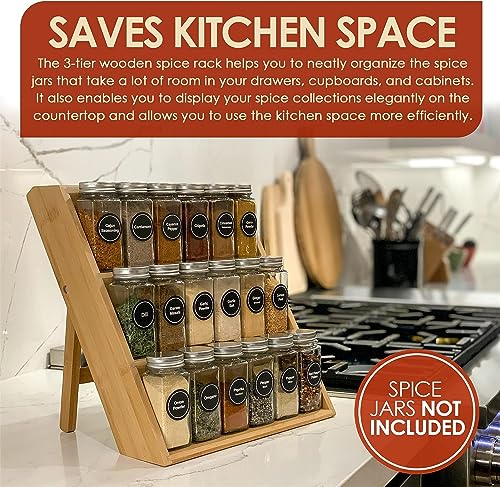 TAME - منظم رف التوابل من تيم توابل خشبي 3 طبقات لسطح المطبخ لدرج منصات عرض موفر للمساحة