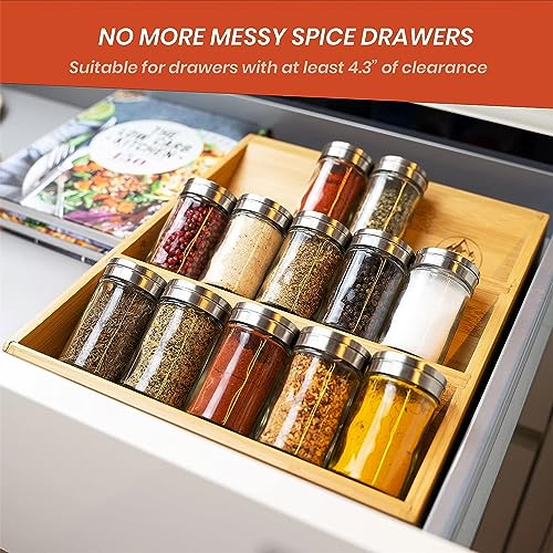 - ✅ رف توابل من ثلاث طبقات - منظم رف التوابل من تيم للدرج صغير بما يكفي ليناسب معظم الأدراج، ولكنه لا يزال كبيرًا بما يكفي لحمل كمية كبيرة من برطمانات التوابل.