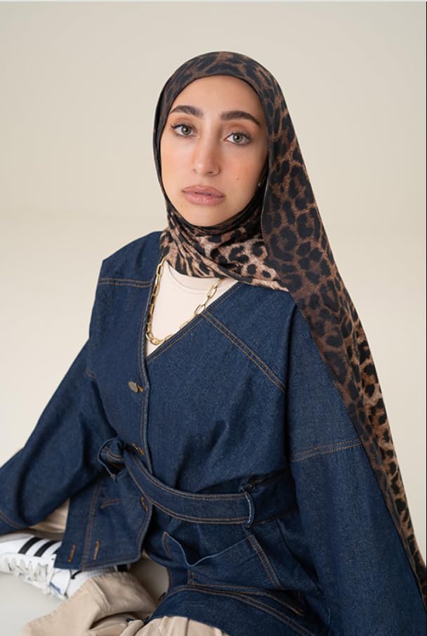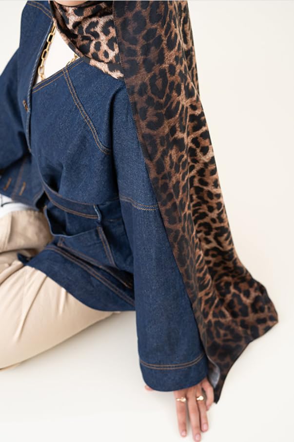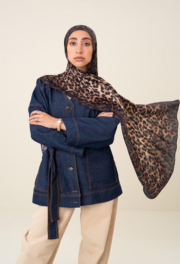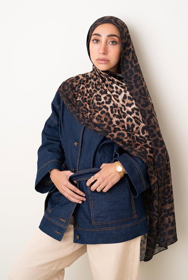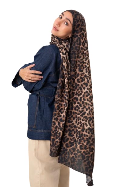 Generic - سكارف شيفون مودال من خامة جلد الفهد بلون بيج داكن - هدية راقية للمناسبات الخاصة - قماش انيق فاخر - نمط متعدد الاستخدامات واكسسوار مثالي لك - حجاب للنساء - مقاس (75 × 180) سم