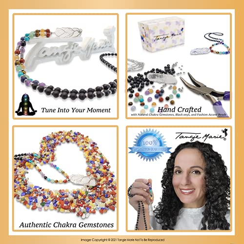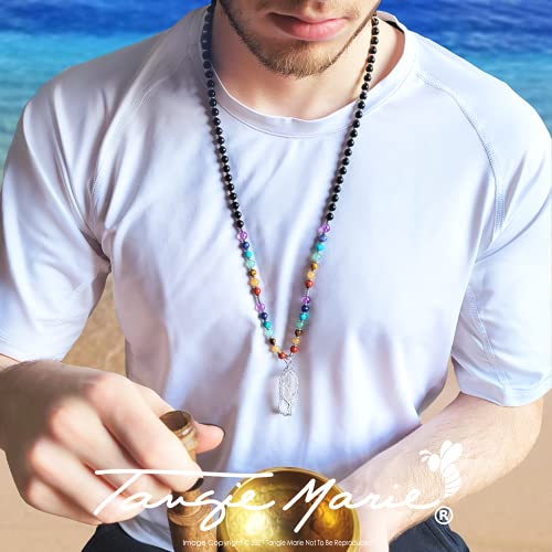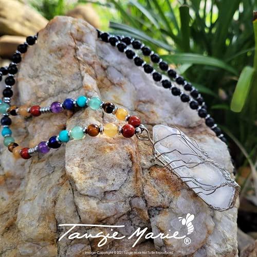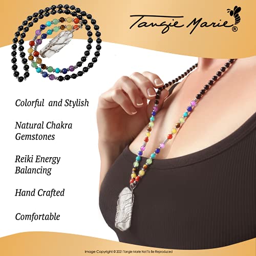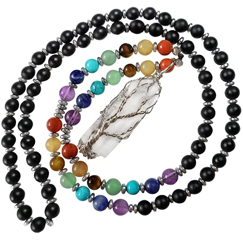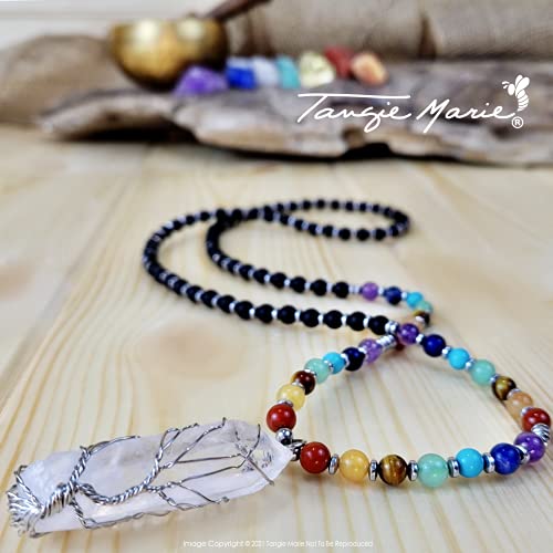Tangie Marie - قلائد كريستال شاكرا - قلادة شجرة الحياة من الكوارتز الشفاف مطرز باحجار ريكي روحية العقيق الاسود الحقيقي للنساء والرجال