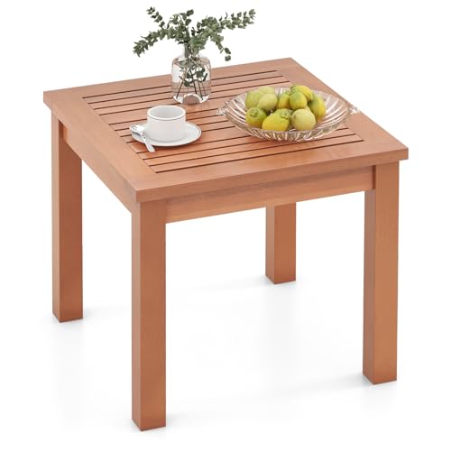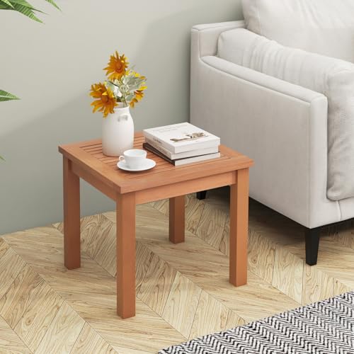Tangkula - تانج كوالا طاولة جانبية خارجية من اديرونداك، طاولة جانبية مربعة صغيرة مقاس 18 انش مع طاولة مسطحة، طاولة جانبية من خشب الاوكالبتوس الطبيعي للفناء الخلفي والحديقة والشرفة وجانب حمام السباحة (18 انش × 18
