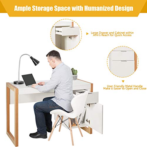 Tangkula - مكتب كمبيوتر من تانج كولا، مع دولاب تخزين ودرج، مكتب منزلي مصنوع من الخشب باللون الأبيض، ومناسب للكمبيوتر واللاب توب والدراسة والكتابة ويتميز بسطح أملس (لون أبيض وبني (Natural))