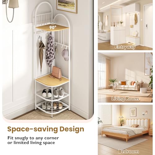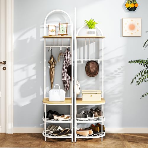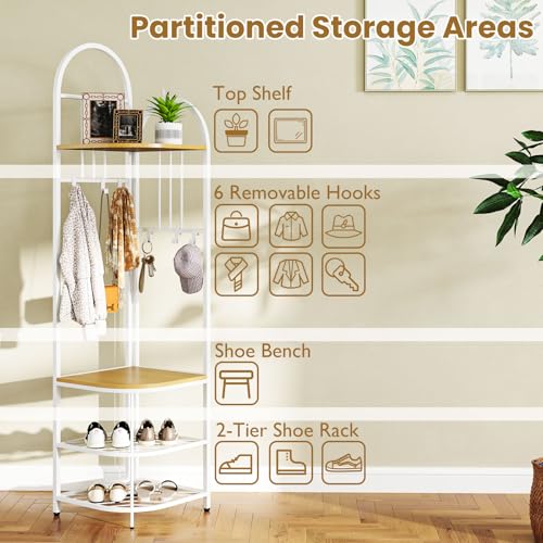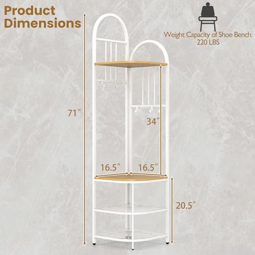 Tangkula - تانج كوالا رف معاطف للمدخل بطول 71 انش مع مقعد احذية و4 رفوف تخزين، 6 خطافات متحركة، رف ملابس معدني قائم بذاته لغرفة النوم والممر وغرفة المعيشة
