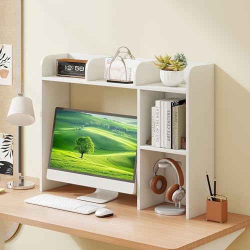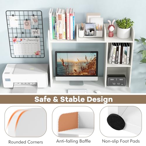 Tangkula - رف كتب لسطح المكتب، صندوق تخزين لتنظيم سطح الطاولة مع 5 أرفف لمكتب الكمبيوتر ورف عرض من 3 طبقة وسطح المكتب من الخشب متعدد الأغراض للمكتب والسكن الجامعي من تانج كوالا بلون أبيض