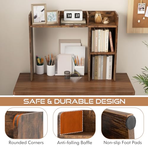Tangkula - تانج كوالا رف كتب لسطح المكتب، صندوق تخزين لسطح الطاولة مع 5 ارفف لمكتب الكمبيوتر، رف عرض لسطح المكتب من 3 طبقات، منظم تخزين خشبي متعدد الاغراض لسطح المكتب لمكتب السكن الجامعي، بني