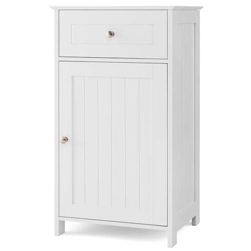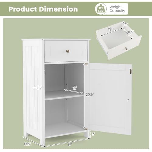 Tangkula - دولاب حمام صغير مصمم خصيصًا للمساحات الضيّقة بتصميم قائم بذاته مع باب واحد، ورف قابل للتعديل وجهاز مضاد للانقلاب ودرج ناعم. للاستخدام في الحمّام أو غرفة المعيشة من تانج كولا