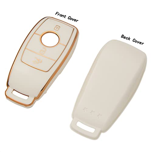 TANGSEN - غطاء حماية كامل ناعم من البولي يوريثين الحراري لمفتاح فوب ذكي بـ3 ازرار، ريموت كنترول بدون مفتاح متوافق مع سيارة بينز C E S فئة E300 E400 E43 W213 من تانجسين - لون عاجي