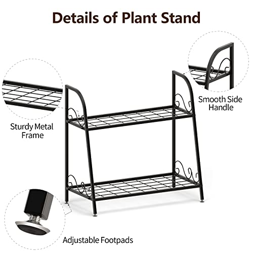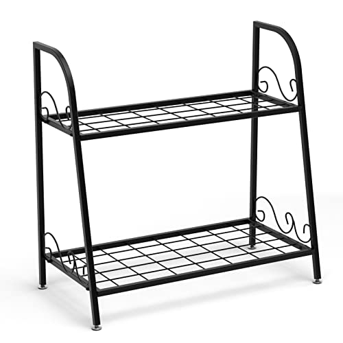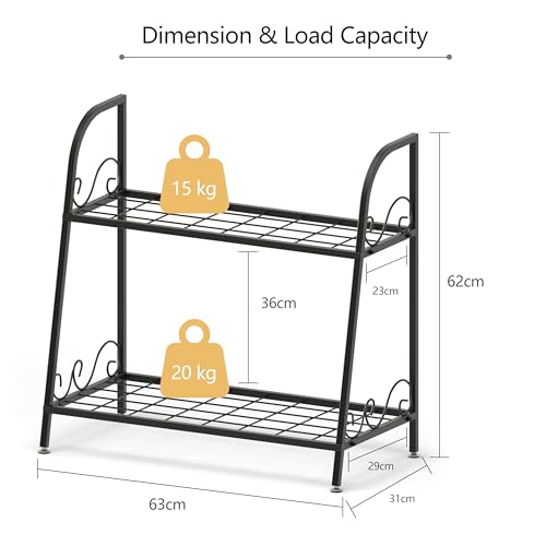 TANGZON - حامل نباتات مكون من 2/3 طبقات من تانجزون، رف عرض زهور معدني شديد التحمل، حامل وعاء نباتات عملي للاستخدام الداخلي والخارجي للمنزل والمكتب والحديقة والفناء (طبقتان، 63 × 31 × 62 سم)