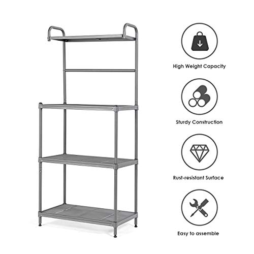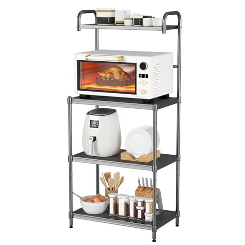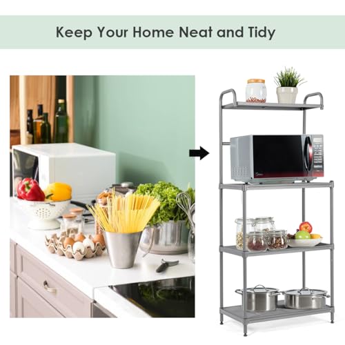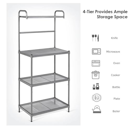 TANGZON - منظم تخزين مكون من 4 طبقات حامل ميكروويف شبكي معدني مع أرفف قابلة للتعديل ووسادات للقدم مناسب للمطبخ وغرفة الطعام المعيشة تانجزون لون رمادي حديد