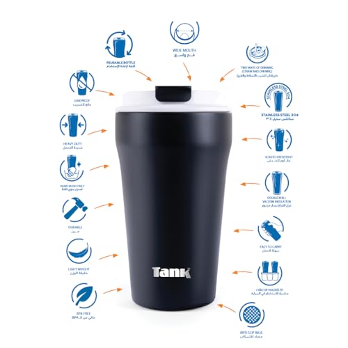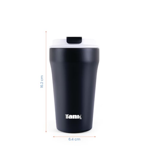 Tank - مج أنيق معزول من الفولاذ المقاوم للصدأ للمشروبات الساخنة من تانك من ايفريداي سعة 350 مل - أسود