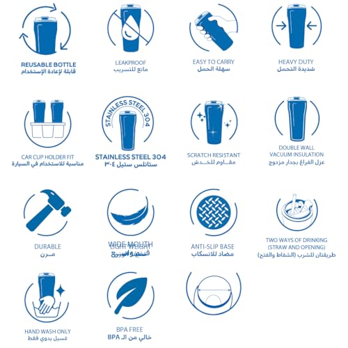 - يحافظ على المشروبات ساخنة لمدة تصل إلى 6 ساعات مع العزل بتفريغ الهواء.