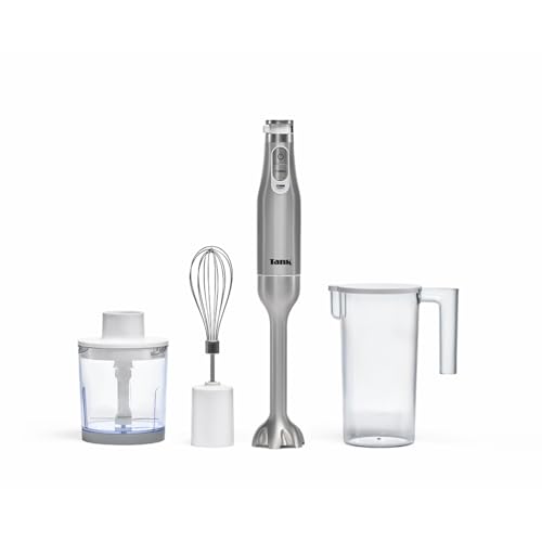 Tank - خلاط يدوي مع إبريق سعة 600 مل ومفرمة وخفاقة 500 مل، 6 سرعات تحكم + توربو، 1200 واط، خالي من مادة بيسفينول أ، ابيض، CM-6004