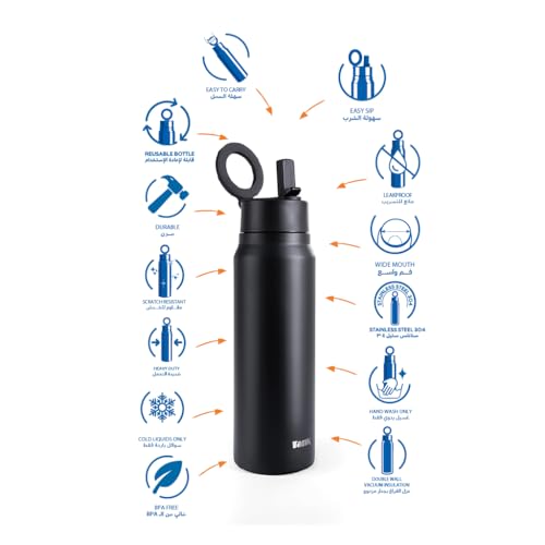 - معزولة للاحتفاظ بالبرودة لمدة 24 ساعة، وهي مثالية للاستخدام أثناء الأنشطة البدنية.