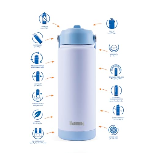 Tank - زجاجة تانك موف سعة 750 مل من الفولاذ المقاوم للصدأ معزولة للمشروبات الباردة، مانعة للتسرب – باللون الأزرق السماوي