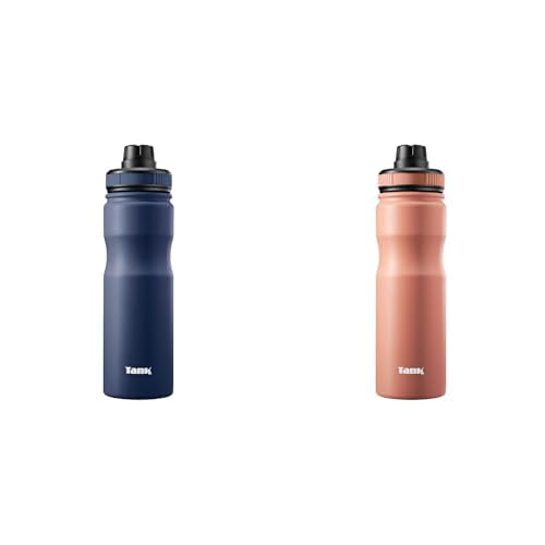 Tank - تانك زجاجة مياه من الستانلس ستيل بسعة 650 مل، باردة حتى 12 ساعة، لون ازرق كحلي وتانك سعة 650 مل، باردة حتى 12 ساعة، برتقالي