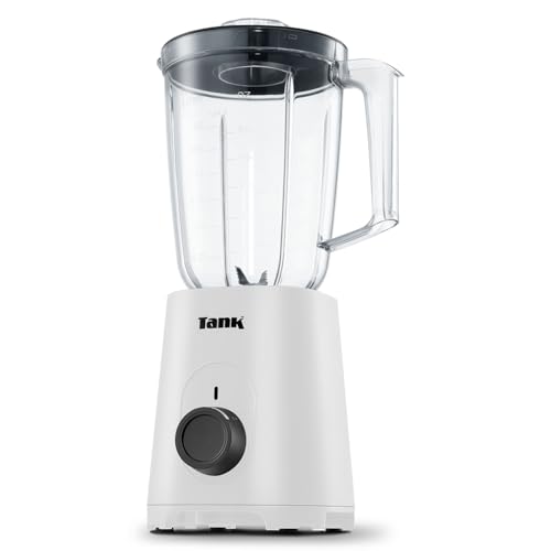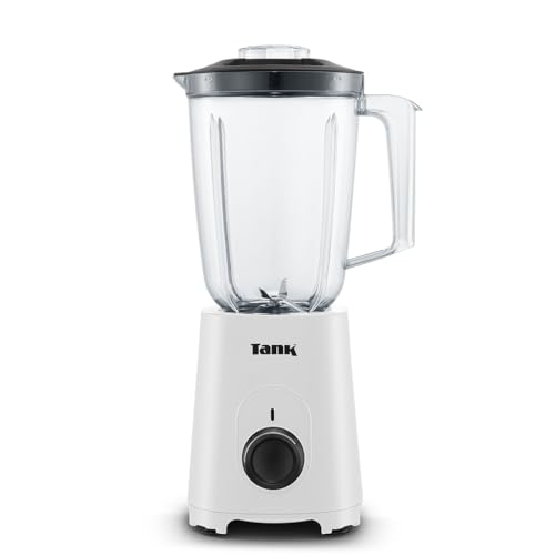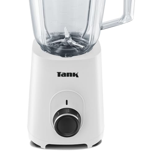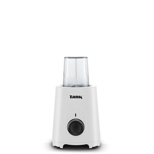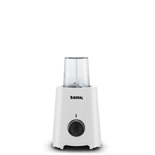 Tank - تانك خلاط سوبر بليندر، ابريق زجاجي سعة 1.5 لتر، مطحنة بلاستيكية خالية من BPA سعة 250 مل، مفرمة لحم بلاستيكية خالية من البيسفينول ايه، 600 واط، ابيض، YB-010، كفالة لمدة عامين